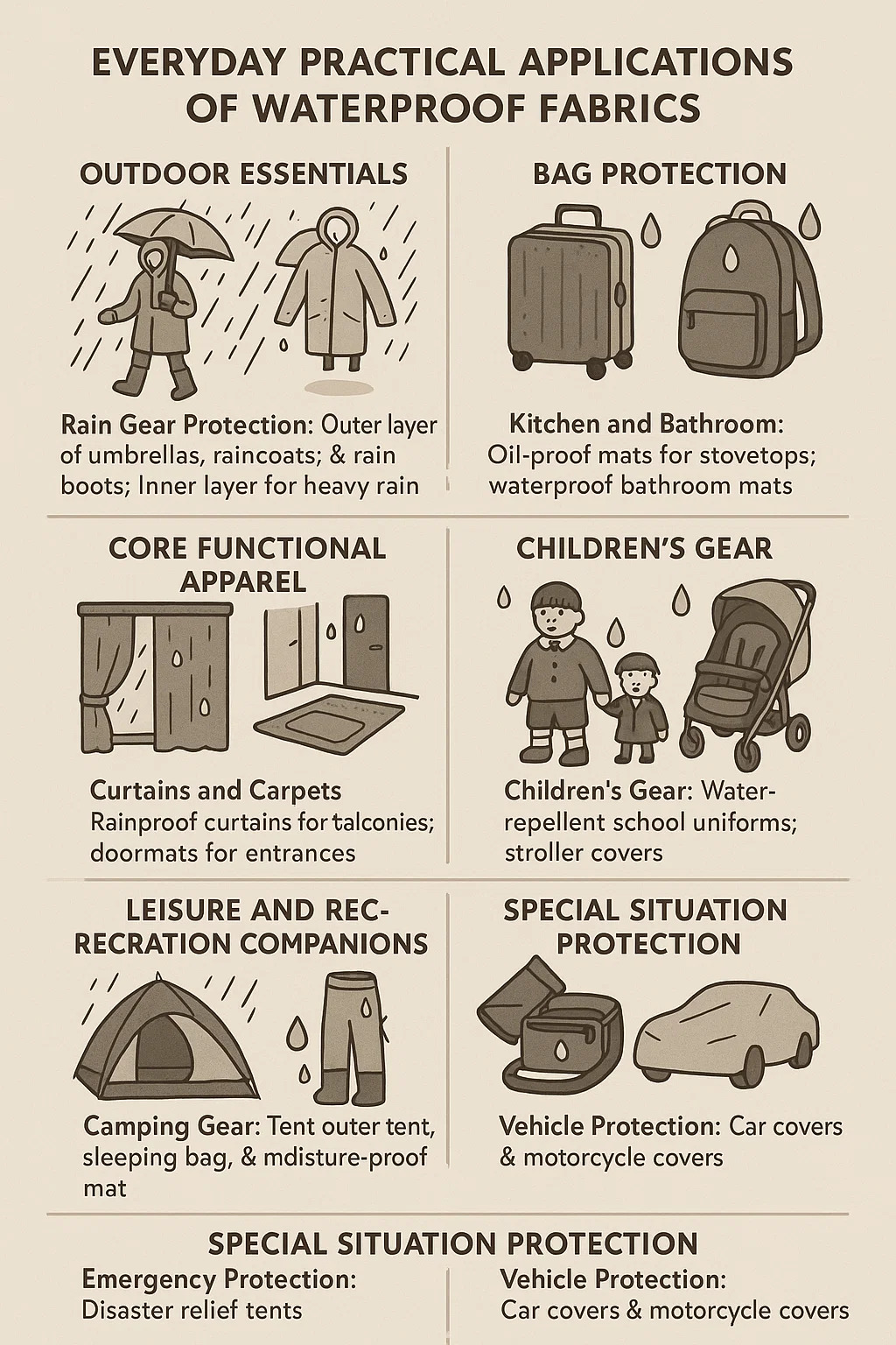 Applicazioni pratiche quotidiane di Tessuti impermeabili