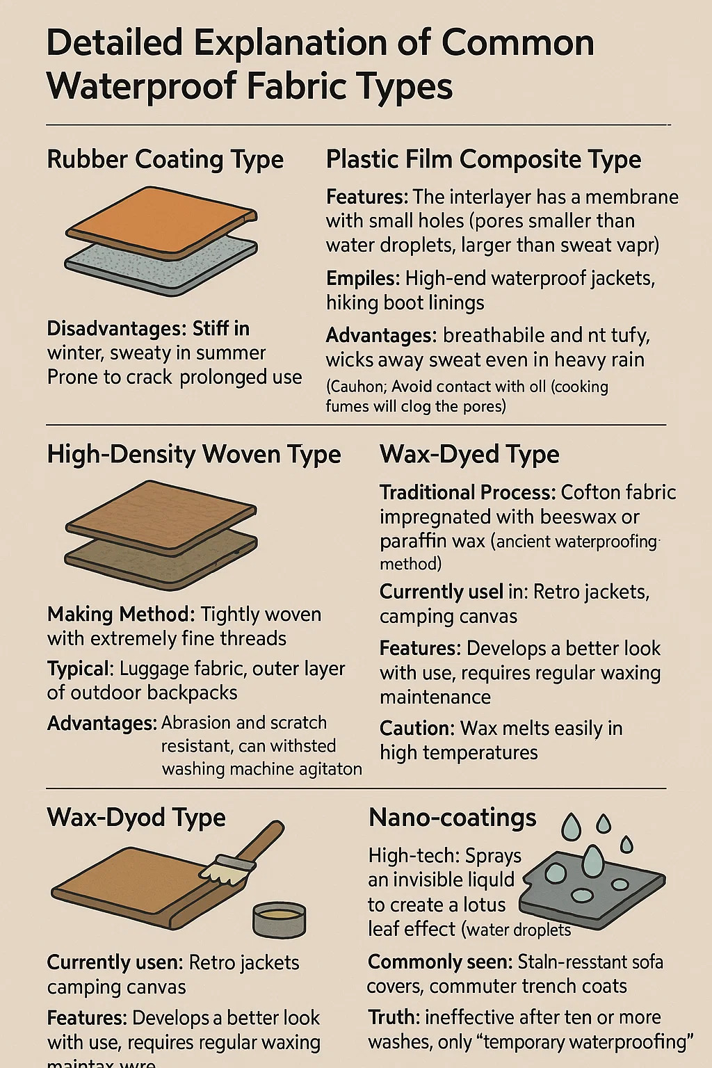 Spiegazione dettagliata dei comuni Tessuto impermeabile Tipi